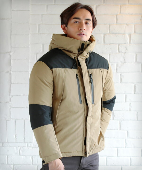 楽天市場 ダウンジャケット メンズ マウンテニア ダウン ボリューム フード ジャケット アウター 冬 冬服 ブラック オリーブ ベージュ ネイビー チャコール グレー バイカラー 防寒 S M L Xl Xxl3 Sputnicks スプートニクス